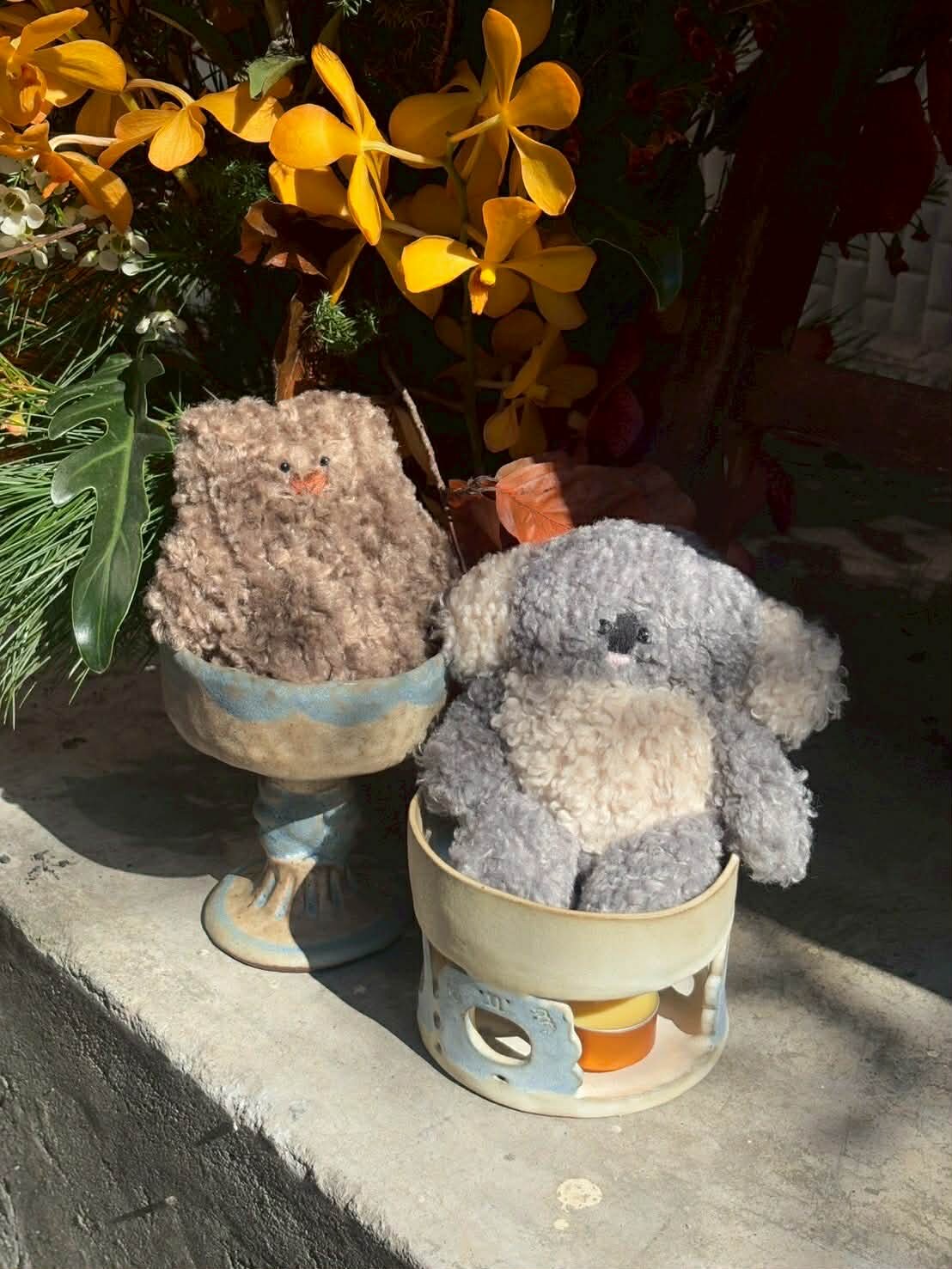 以無尾熊跟袋熊為創作靈感,將插畫角色結合陶藝與手縫玩偶,創造出符合Fluffybaby世界觀獨特風格的作品。