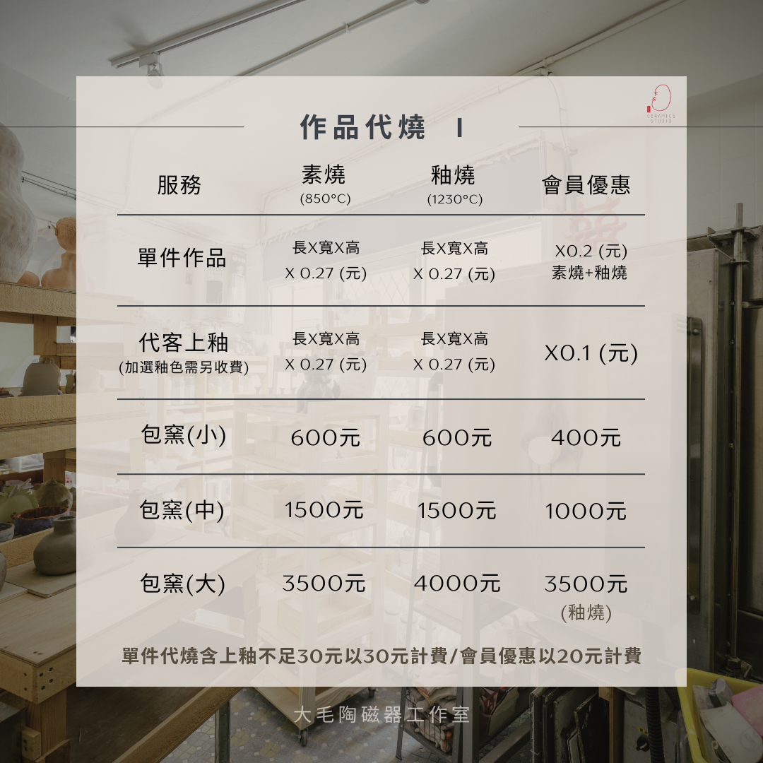 ・非本工作室製作之作品須完全風乾,並清楚告知適合燒成溫度。
